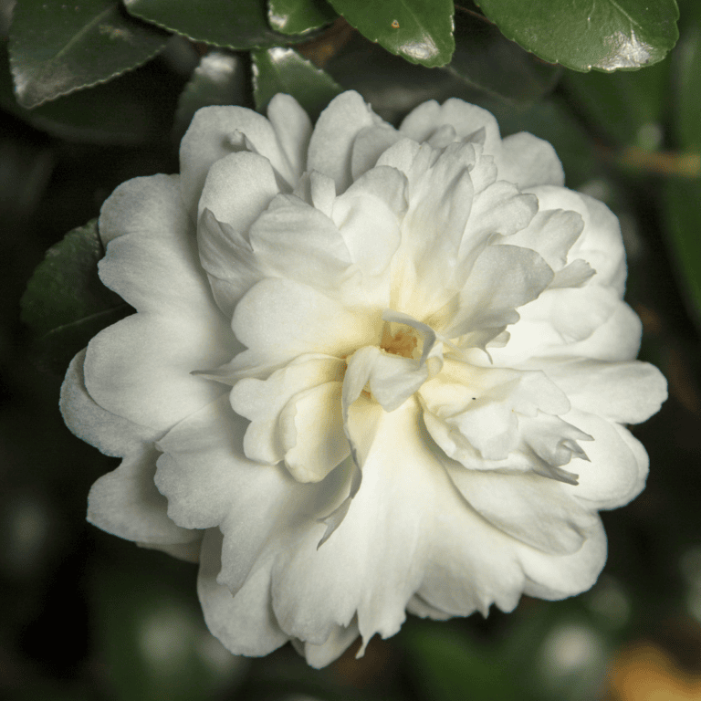 Ivory’s creamy white, fully double carnation-like flower with ruffled petals will become your new favorite white-bloom camellia. Expect profuse blooms on a more manageable, vigorous, upright habit.