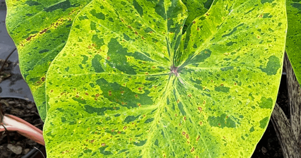 Royal Hawaiian® ‘Tropical Paradise’ Colocasia – The lush green leaves of ‘Tropical Paradise’ are speckled with darker spots and splashed with a striking central white marking. Sturdy, dark petioles add rich contrast and provide exceptional resilience against wind and extreme weather. Compact and eye-catching, ‘Tropical Paradise’ forms a tidy clump at 2 feet tall and wide that’s perfect for containers, poolside plantings, or tropical borders in USDA Zones 7b-11. Available to the trade in 2026 through Southern Living® Plant Collection and Sunset® Plant Collection.